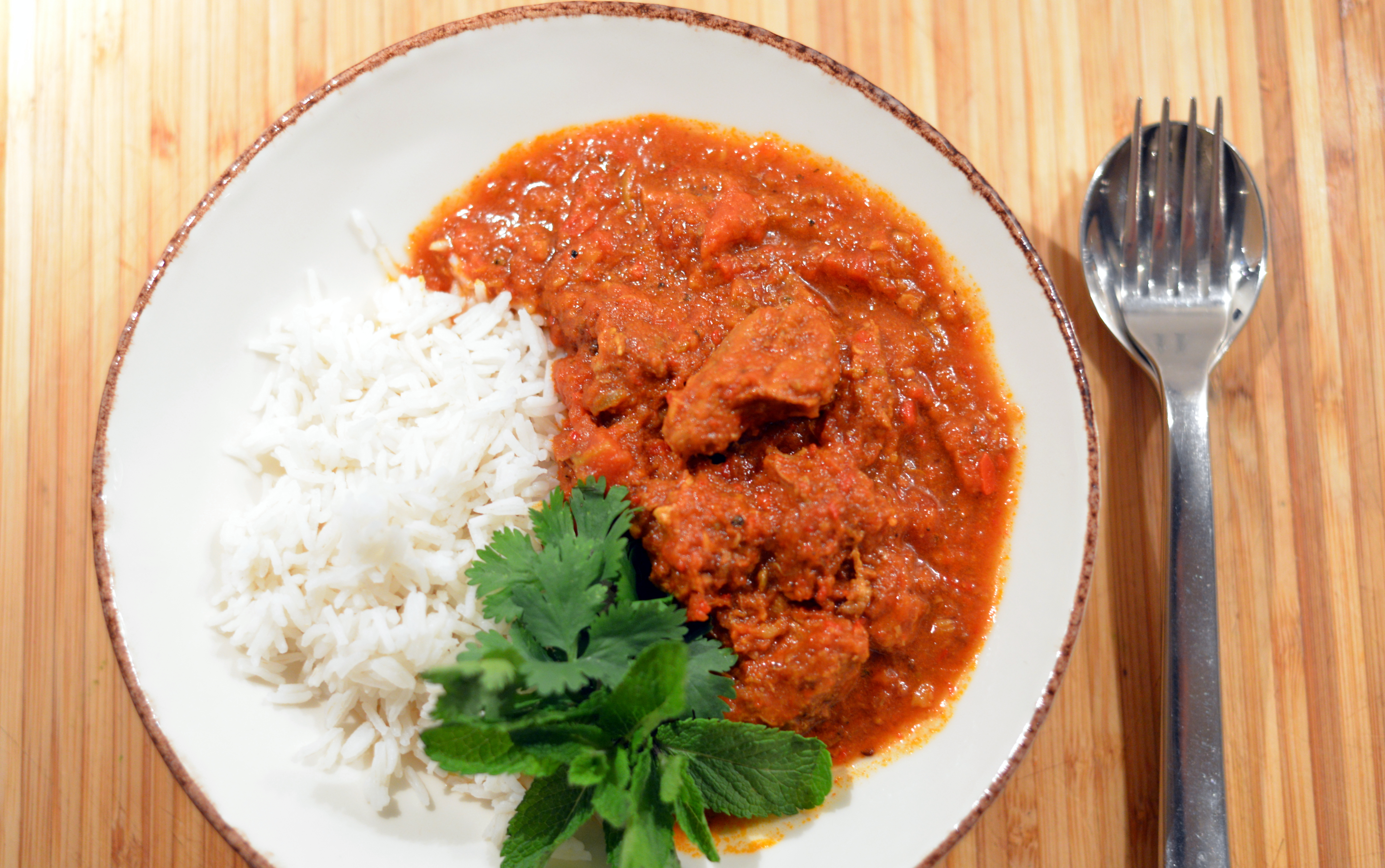 - This rogan josh works brilliantly with plain steamed or boiled basmati rice.