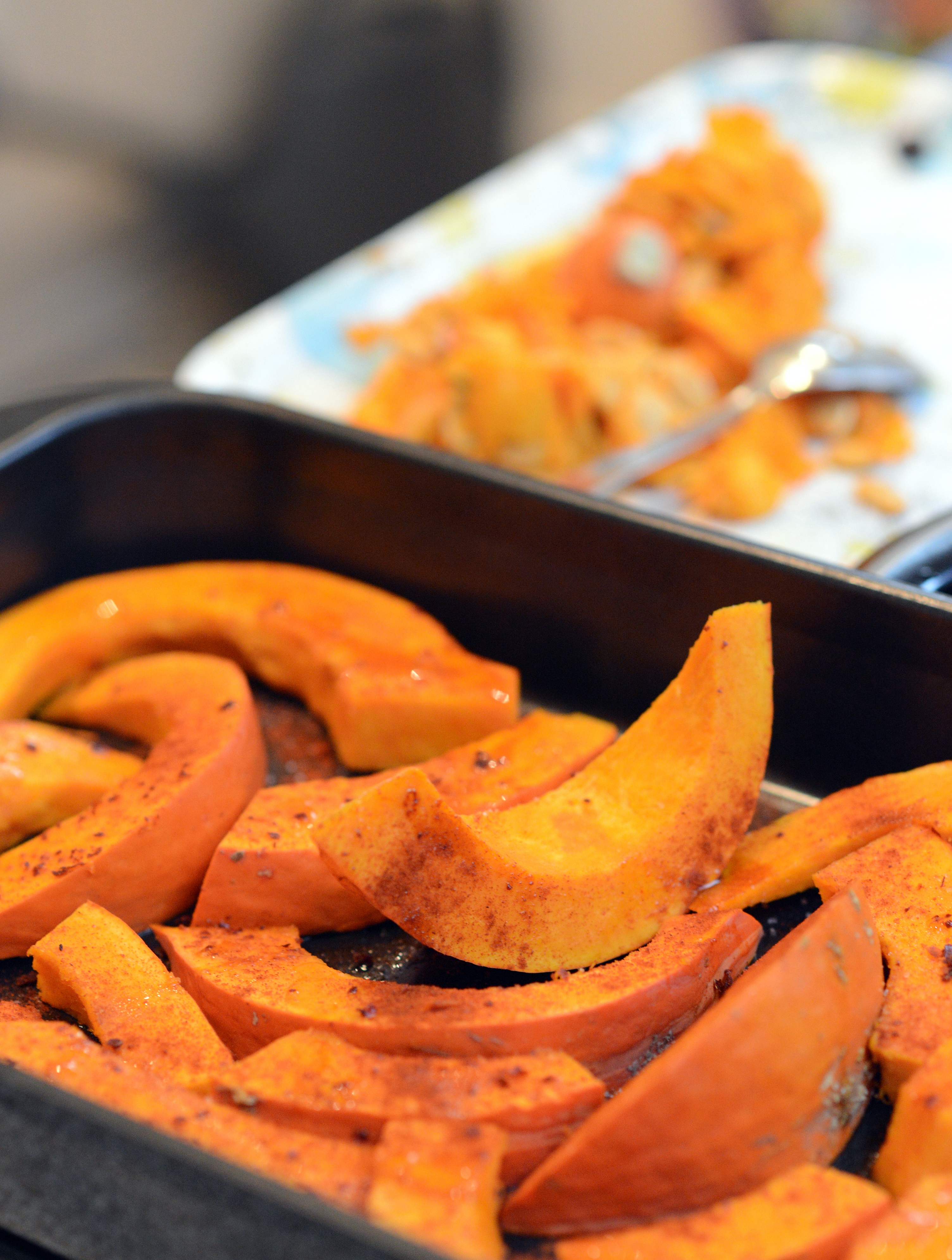 I must admit I had to make a few changes in the recipe as I got more confident making it, like more lemon juice, less garlic, less tahini etc, so it would be fair to say this recipe is a variation on that Ottolenghi recipe, with the addition of roasted pumpkin.