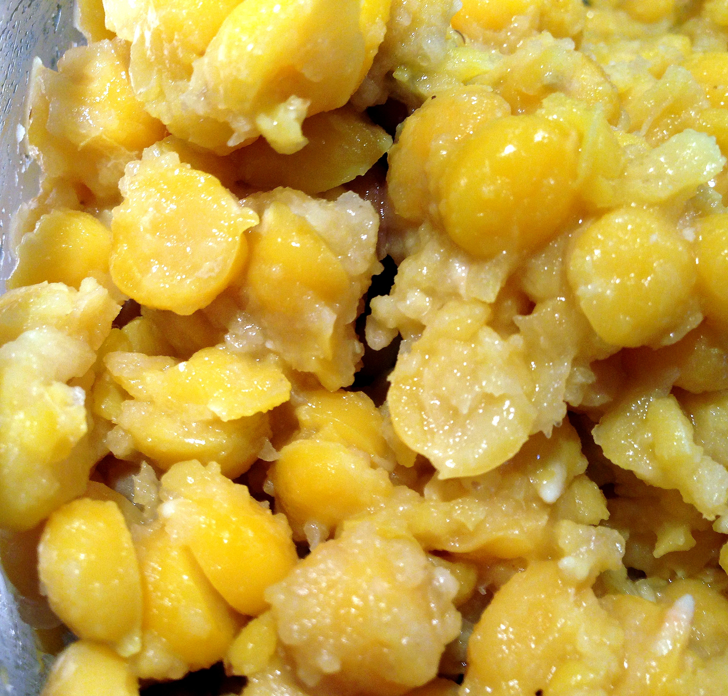 - Place the drained the chickpeas in a food processor and process until you get a stiff paste