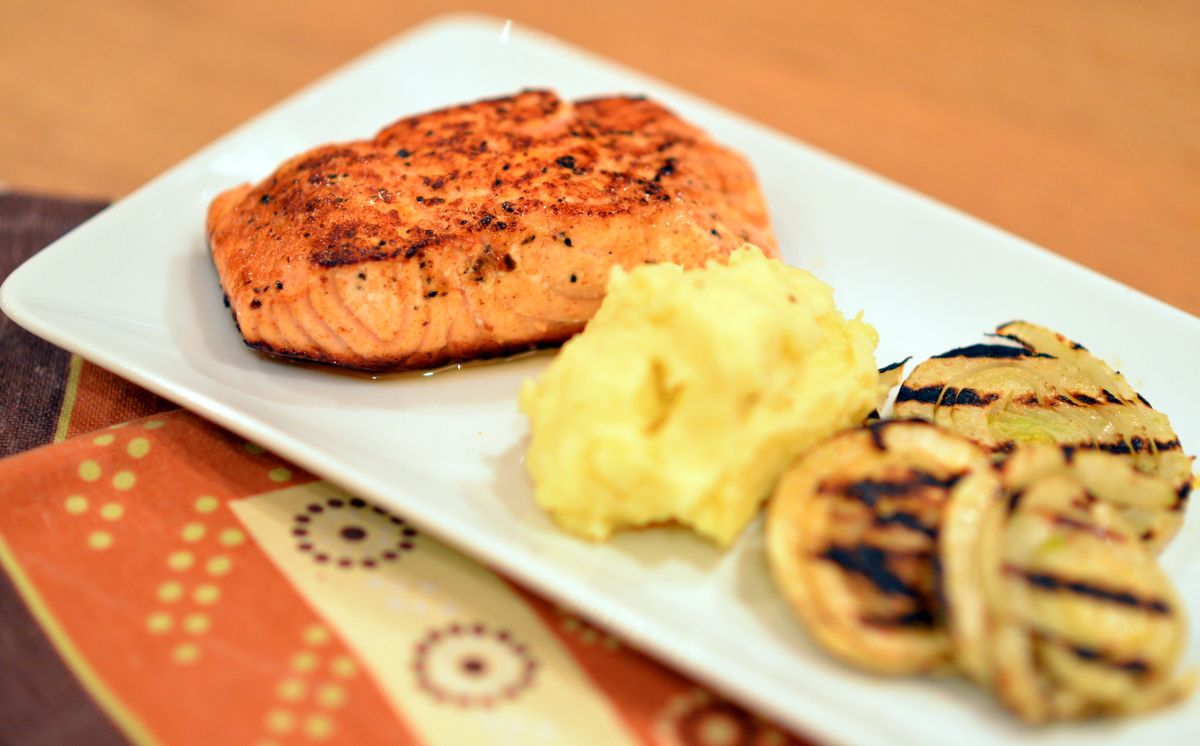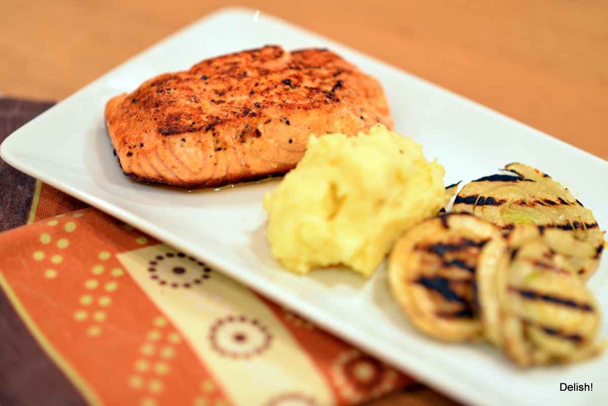 In light of my “New Year’s” resolution, I will kick off the 2014 recipes on Delish! with a salmon dish that I love. It is simple and quick. Almost impossible to get wrong if you stick to the timings. Salmon cooked in this way goes very well with fennel. Even if you are not a fennel fan, try this once and you might change your mind, as it goes well with salmon and really compliments the flavour of this beautiful fish. I served this recipe with classic mash potato but you can also serve it with rice, pasta or quinoa.
