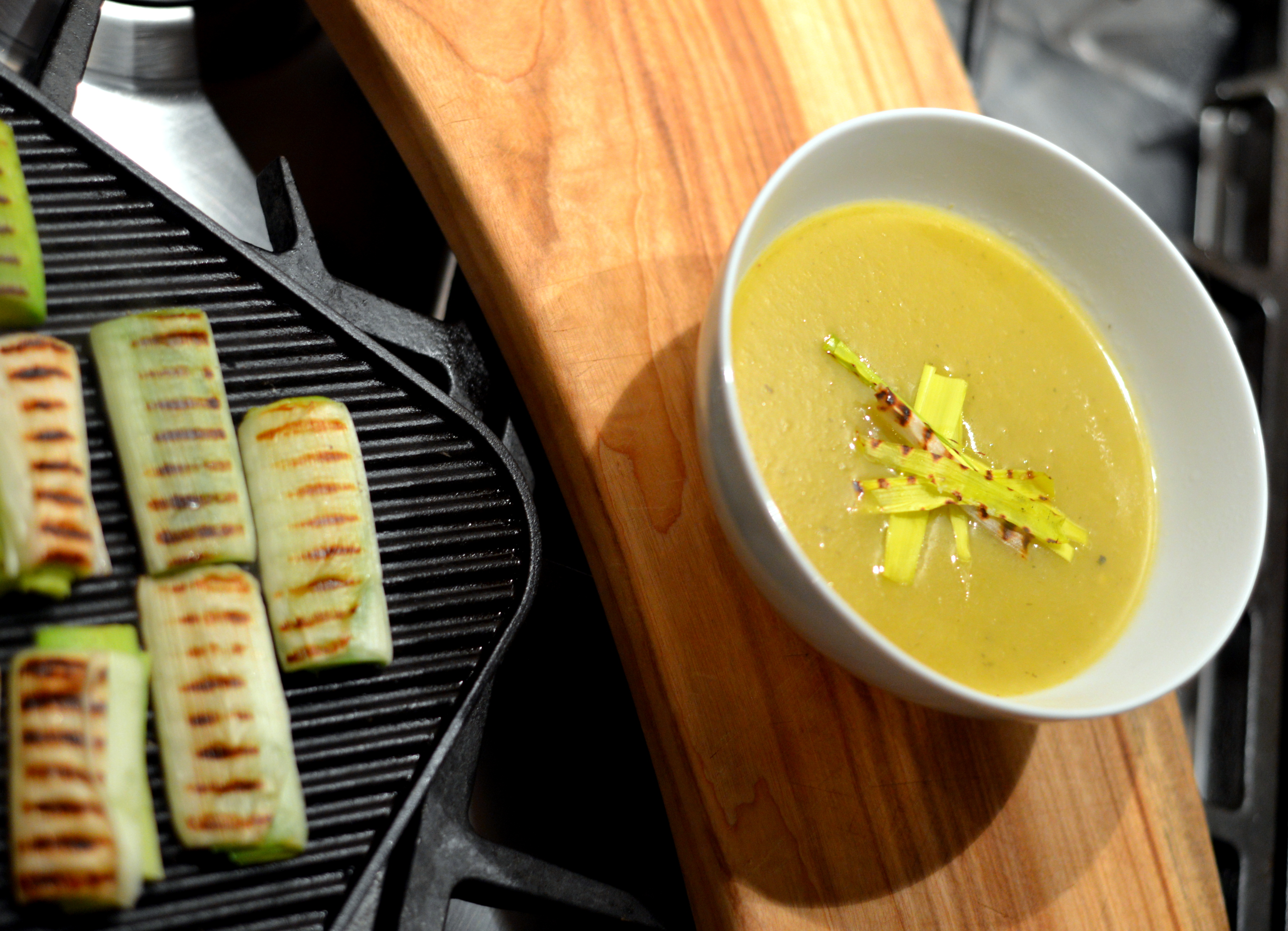 - In the meantime grill the leek you saved earlier with a light brush of olive oil