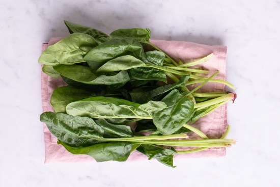 - Place all the spinach and the roquette into a salad bowl