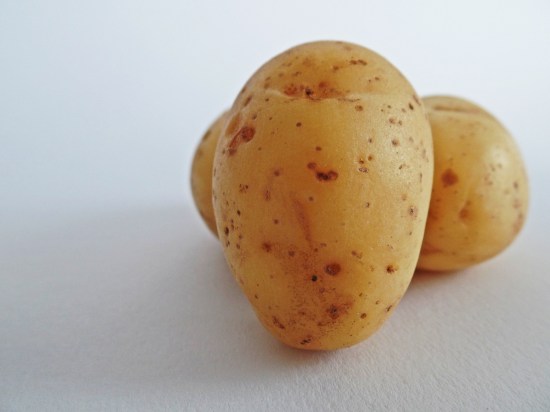 - Place the slices of boiled potato and the tomato on a plate