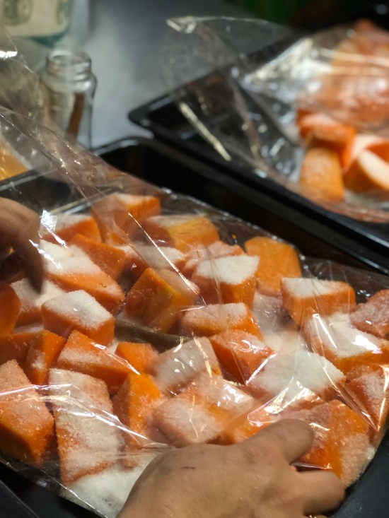 5) Make sure to cover all the pumpkin with the sugar, add another ½ a cup if needed